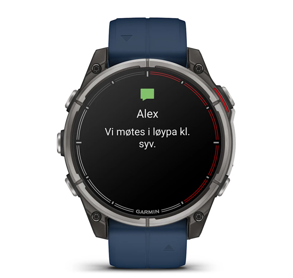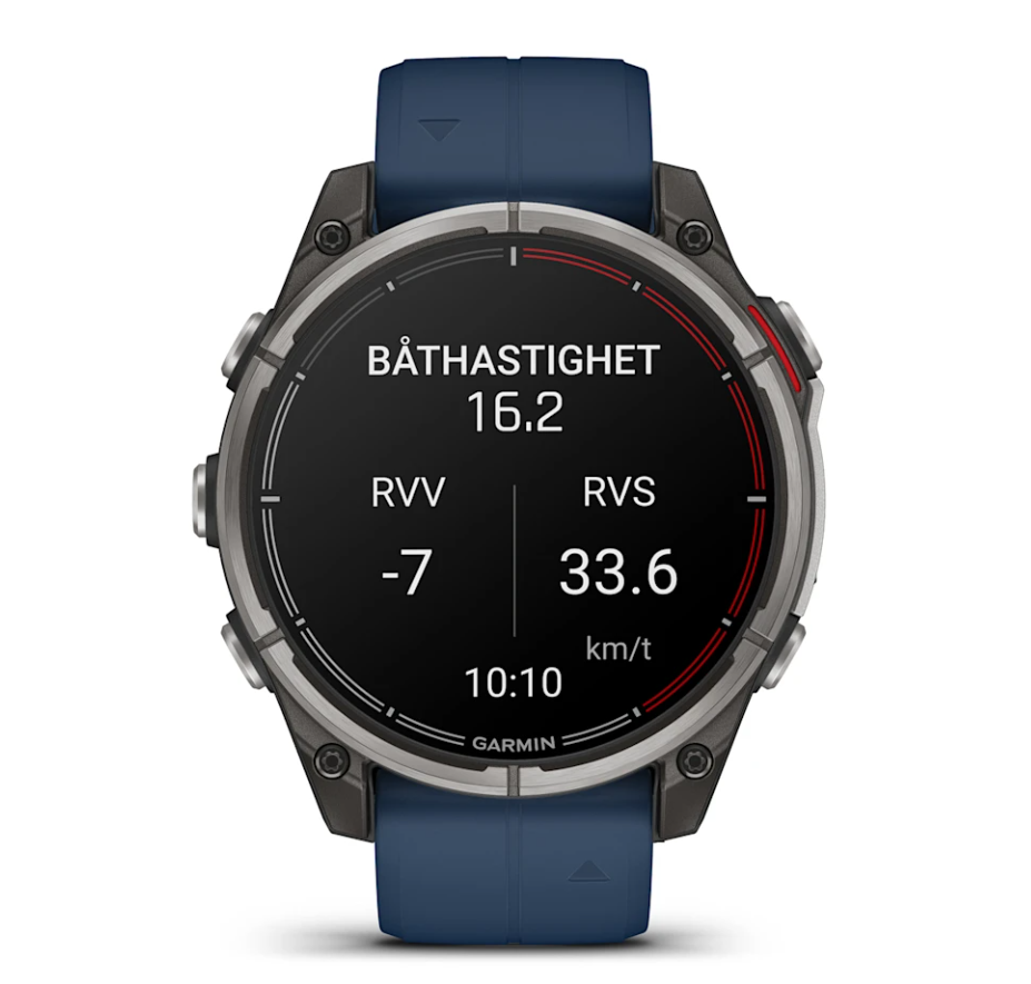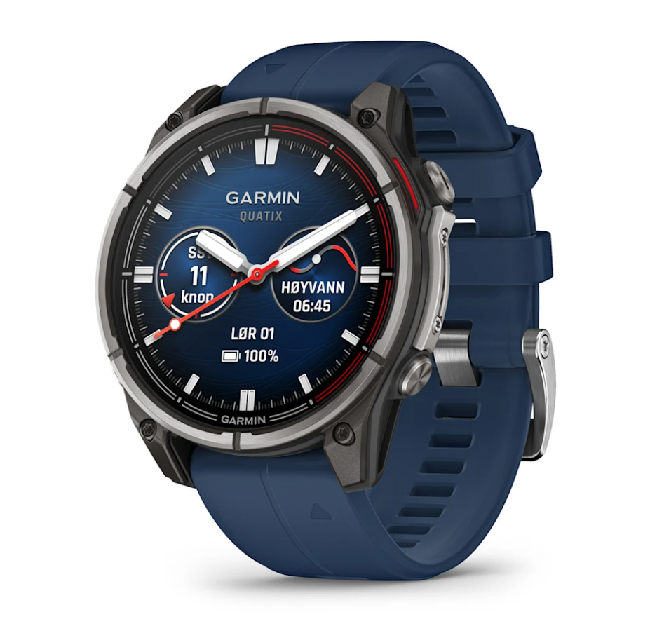 Den maritime quatix 8-smartklokken har en klar AMOLED-skjerm på 1,4″ og en LED-lommelykt, slik at du har funksjonene du trenger på sjøen – og dem du vil ha når du er på land.